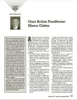 “Class Action Foodborne-Illness Claims” focuses on the elements of a class action lawsuit, certification of a class, and gives reasoning to the decision behind bringing individual lawsuits on behalf of victims of foodborne illness: Because individuals injured in a foodborne illness outbreak sustain varying degrees of injuries, a class action lawsuit typically is not the most effective – or fair – way to compensate victims for injuries sustained after eating unsafe food.