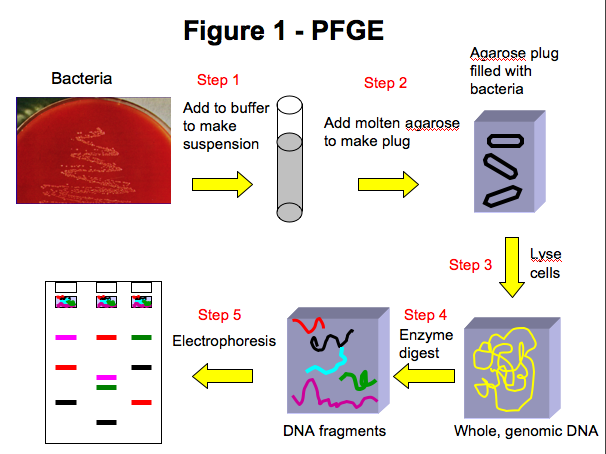 - Ribot EM, Fair MA, Gautom R, Cameron DN, Hunter SB, Swaminathan B, Barrett TJ. Standardization of pulsed-field gel electrophoresis protocols for the subtyping of Escherichia coli O157:H7, Salmonella, and Shigella for PulseNet. Foodborne Pathog Dis. 2006 Spring;3(1):59-67.