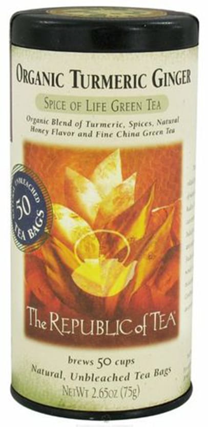 - Organic Turmeric Ginger Green Tea – 50 CT Tin