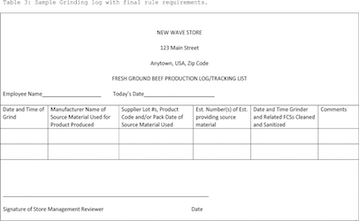 Retail-exempt facilities regularly mix cuts of beef from various sources to make ground beef products. This FSIS rule will require such facilities to maintain clear records identifying the source, supplier, and names of all materials used in the preparation of raw ground beef products. All pre-operation, mid and post sanitation work will also be recorded on a lot-by-lot basis. The Agency is seeking to broaden its regulation of retail-exempt facilities, which have traditionally come under the purview of state and local regulatory authorities. This rule will very well set a precedent for FSIS to expand its regulatory activities with regard to retail and grocery facilities that are not currently subject to ongoing federal inspection. HACCP in a grinding operation The Food Marketing Institute (FMI) advises that facilities should also ensure their employees are qualified to perform their assigned duties and are properly trained in the principles of food hygiene, food safety, and employee health and hygiene. One method of achieving this would be training and certification of at least one management level person in charge of the grinding operation in Hazard Analysis Critical Control Point (HACCP) principles, specific to the beef grinding process. HACCP is a process control system designed to prevent, eliminate or reduce food safety hazards to an acceptable level. The establishment in its hazard analysis must consider biological, physical, and chemical food safety hazards. Raw product, like ground beef, has no kill step in a grinding operation for reducing to an acceptable level microbial food safety hazards, such as E. coli O157:H7 or Salmonella.