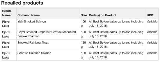 In a July 4 recall update, the CFIA reported the recalled Fjord Laks brand Scottish smoked salmon has the potential to have dangerous bacteria growth if it was sold refrigerated. “Check to see if you have recalled product in your home. Recalled product should be thrown out or returned to the store where it was purchased,” Canadian health authorities said in the recall notice. “If you think you became sick from consuming a recalled product, call your doctor. “Food contaminated with Clostridium botulinum toxin may not look or smell spoiled but can still make you sick. Symptoms can include nausea, vomiting, fatigue, dizziness, blurred or double vision, dry mouth, respiratory failure and paralysis. In severe cases of illness, people may die.” No illnesses had been confirmed in connection with the recalled salmon as of the July 4 recall update. (To sign up for a free subscription to Food Safety News, click here.)