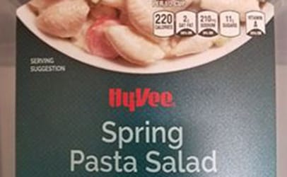 The expiration dates for the recalled pasta salad range from June 22 through Aug. 3 (tomorrow). Hy-Vee sold the pasta salad in 1-pound (16-ounce) and 3-pound (48-ounce) plastic containers. It also may have been scooped at the deli counter into clear plastic containers. It was sold in all Hy-Vee grocery stores in Illinois, Iowa, Kansas, Minnesota, Missouri, Nebraska, South Dakota and Wisconsin.