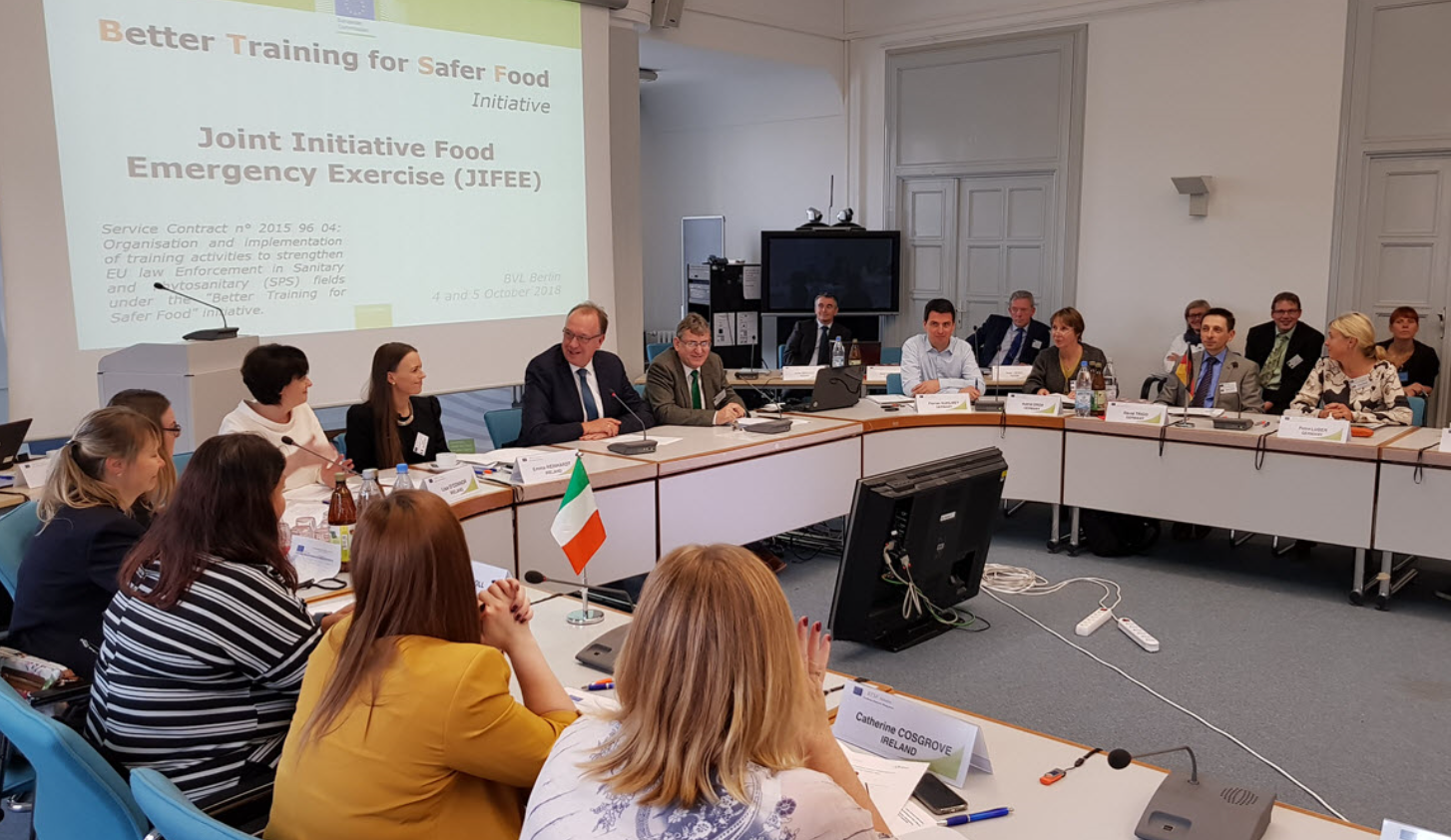 The event was organized by the Joint Initiative Food Emergency Exercise (JIFEE) working group of the Heads of Food Safety Agencies (HoA) with funding from the Better Training for Safer Food (BTSF) initiative.
