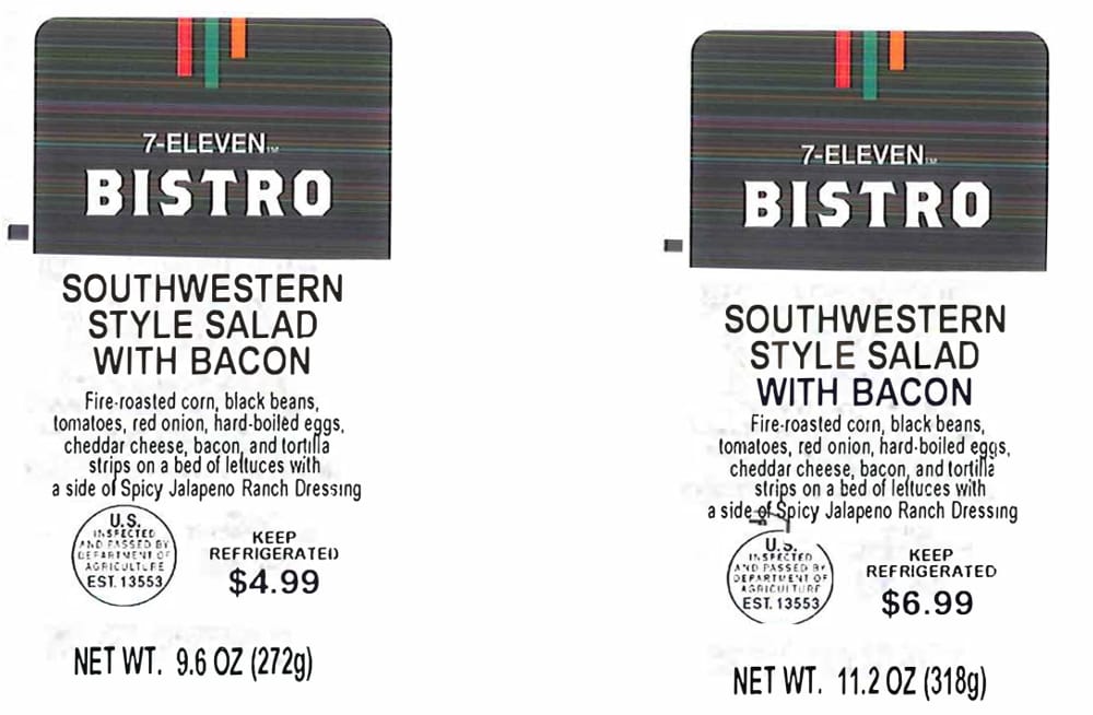 - 9.6-oz. clear plastic clamshell packages containing “7-ELEVEN BISTRO SOUTHWEST STYLE SALAD WITH BACON” and best by date of “Tuesday 1016”