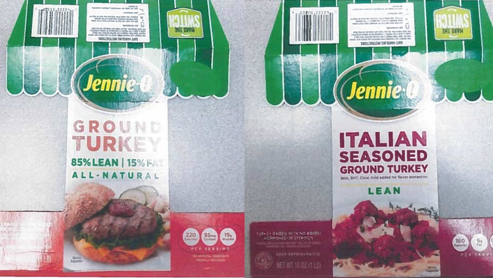 - 1-lb. packages of “Jennie-O GROUND TURKEY 85% LEAN | 15% FAT” with a “Use by” date of 10/02/2018.