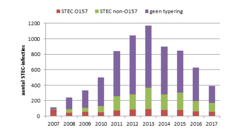 Shiga toxin producing E. coli (STEC) infections are at the lowest level since 2009, according to Dutch surveillance statistics.
