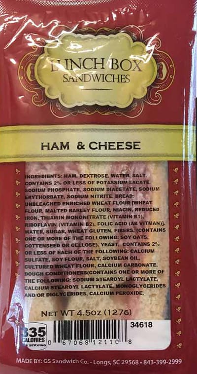 Grand Strand Sandwich distributed the recalled products from Dec. 17, 2018, through Jan. 4, 2019. The sandwiches were packaged in clear plastic and sold primarily in convenience stores and vending machines in North Carolina and South Carolina.
