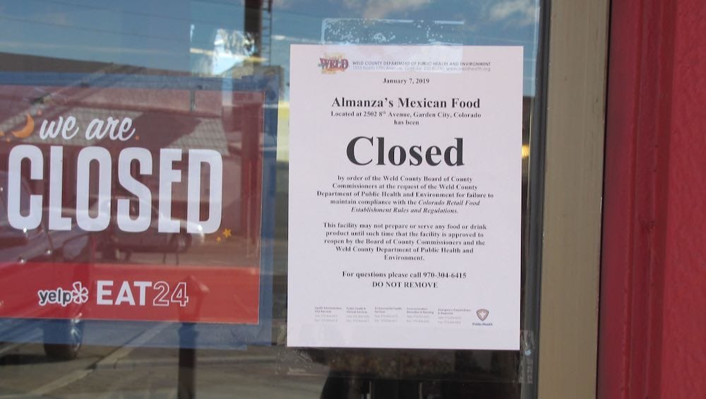The Weld County Department of Public Health asked the commissuioners to close the restaurant.