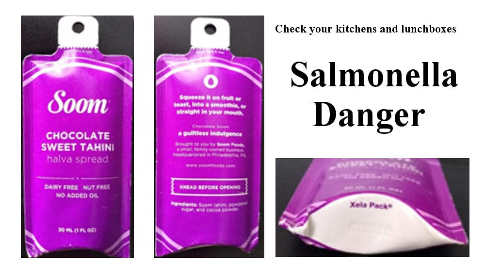 “Soom Foods was notified of the Chocolate Sweet Tahini Halva Spread product testing positive for Salmonella Tennessee, but has not yet acted to protect public health by recalling the product. These particular products may have been distributed by various retailers as samples,” according to the FDA public health alert.