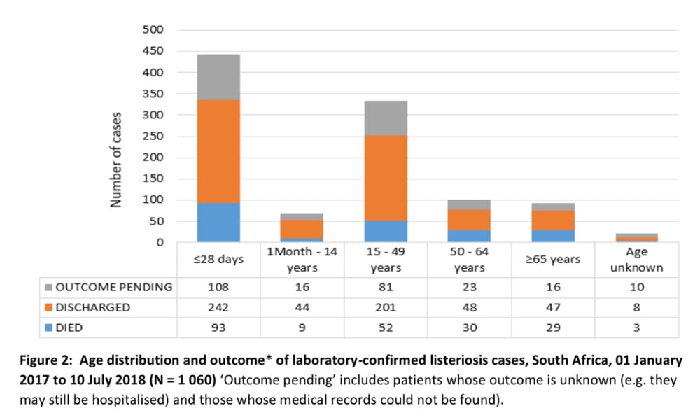 As of 26 July 26, 2018, there were 1,060 laboratory-confirmed listeriosis cases reported to NICD from all provinces since 01 January 2017.