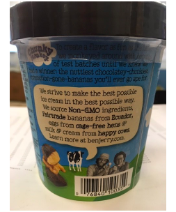 The affected Ben & Jerry’s “Chunky Monkey” pint is sold in a pint tub (473 mL), with a Consumer UPC number of “076840100354” and best-by-dates of “AUG2820BH2,” “AUG2920BH2,” or “AUG3020BH2.”