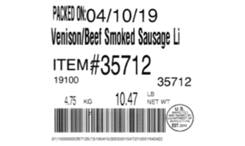 The fully cooked, smoked venison sausage contains beef, pork, and other nonmeat products items. The recalled sausage products were produced between May 3, 2017, and March 22, 2019. The following products are subject to recall: