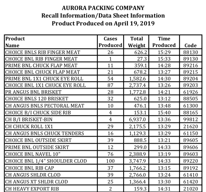 Aurora Packing Company Inc. is recalling more than 62,000 pounds of raw beef that may be contaminated with E. coli O157:H7, according to the USDA. This recall comes after a March 27 recall, in which the company pulled back more than 2 tons of beef, also because of an E. coli risk.