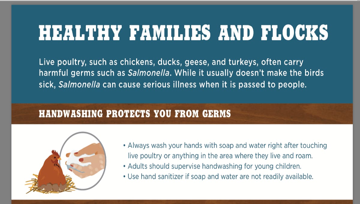 But, proper handwashing and careful handling of backyard chickens and ducks can eliminate much of the risk. Also, state health departments are increasingly working with hatcheries and other businesses that sell live chicks to consumers to raise public awareness about the risks of infection.