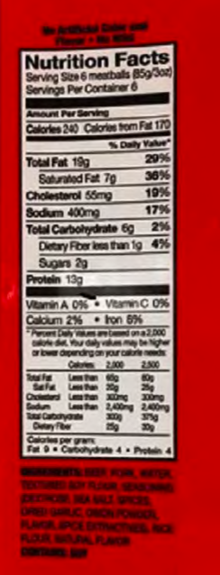 According to the recall notice posted by the USDA’s Food Safety and Inspection Service (FSIS), the frozen ready-to-eat beef and pork meatballs are considered misbranded under federal law because they contain milk and wheat ingredients but their labels do not declare milk or wheat, which are known allergens.