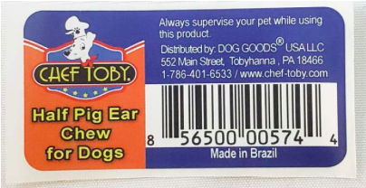 Dog Goods USA LLC has recalled its Chef Toby Pig Ears Treats because they have the potential to be contaminated with Salmonella, according to a notice posted by the Food and Drug Administration. The Centers for Disease Control and Prevention is working with the FDA and several state agencies on the outbreak investigation.