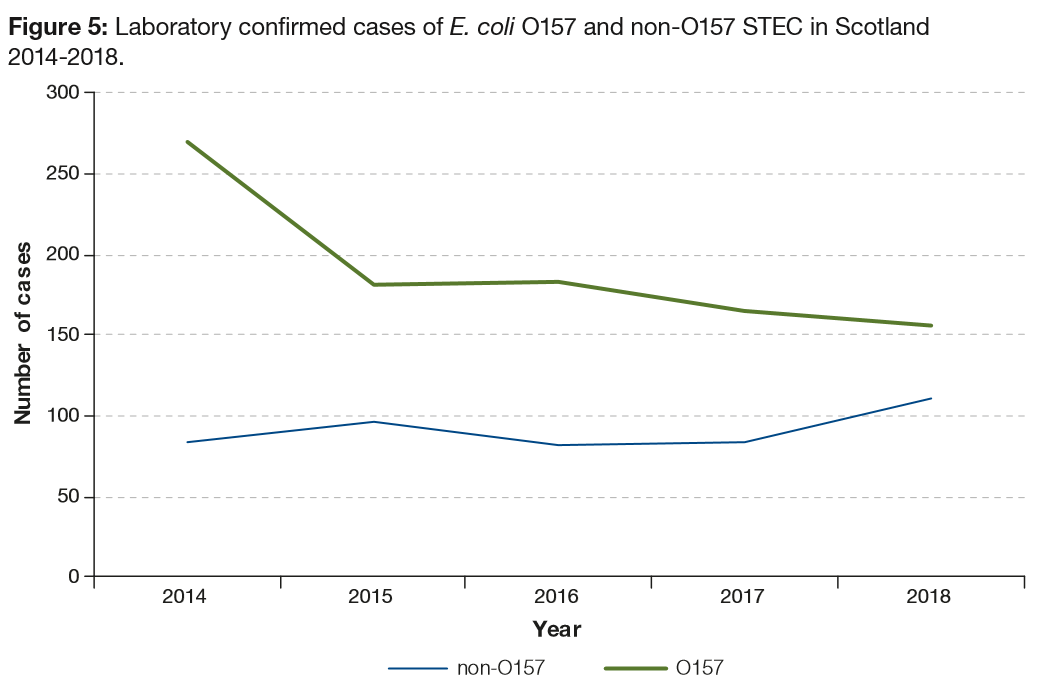 In 2018, 156 cases of confirmed E. coli O157 infections were reported to HPS, representing a slight decrease on the 165 the year before and 183 infections in 2016.