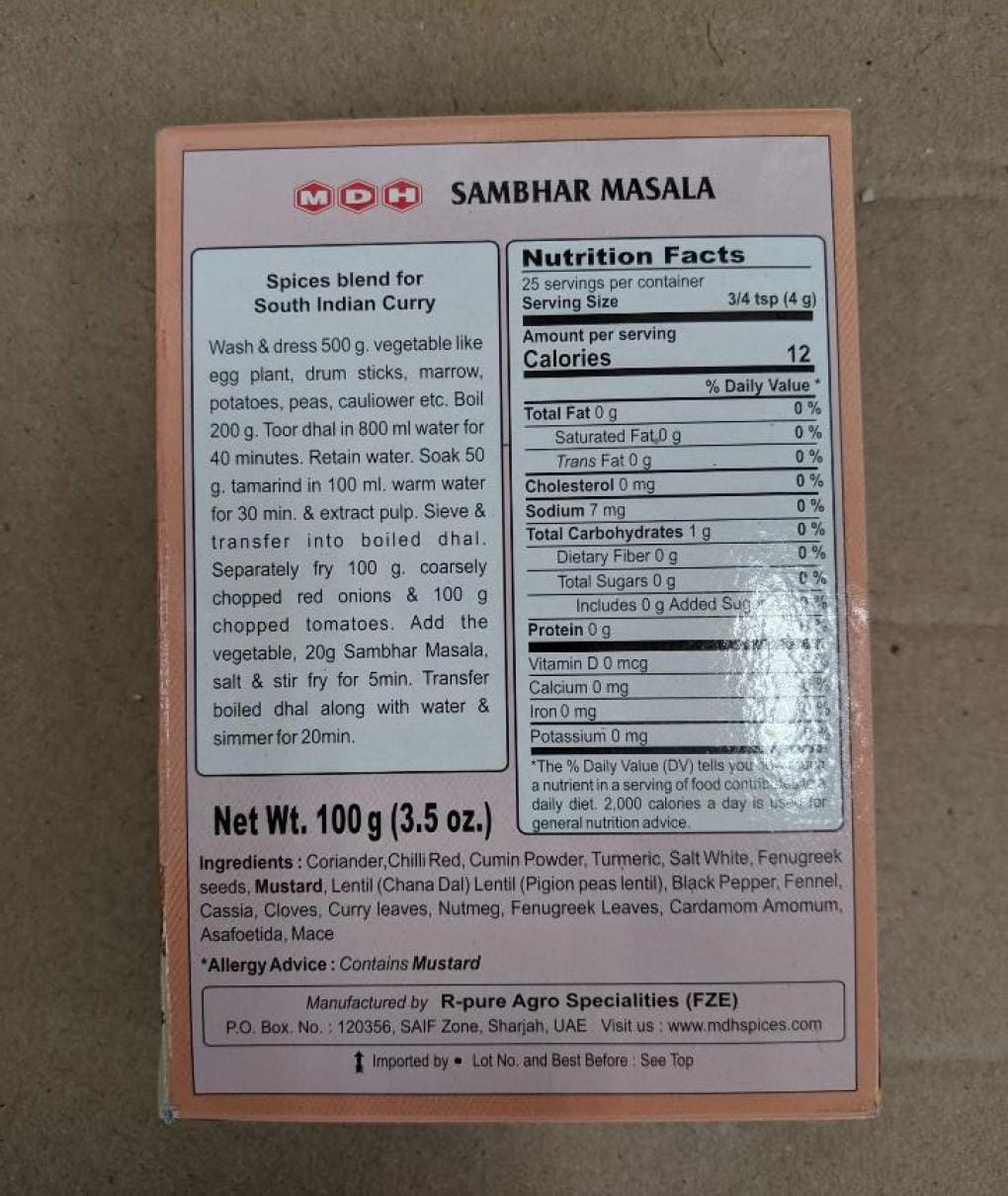 House of Spices (India), packaging products under MDH brand names, is recalling various lots of “MDH SAMBAR MASALA” because of the risk of Salmonella contamination, according to a recall notice posted on the FDA’s website.
