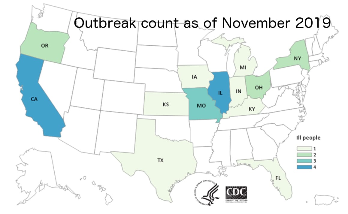 Two people died in the United States during the 18-month outbreak. It sickened at least 24 people, with 22 of them admitted to hospitals, according to an update posted today by the U.S. Centers for Disease Control and Prevention.