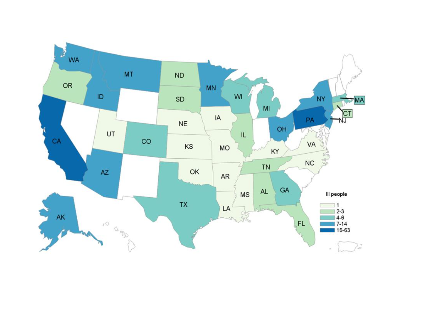 - 240 case-patients from 37 states (238 of them were infected with STEC O157; 1 was co-infected with STEC O157 and STEC O61, and 2 were infected with only STEC O61).