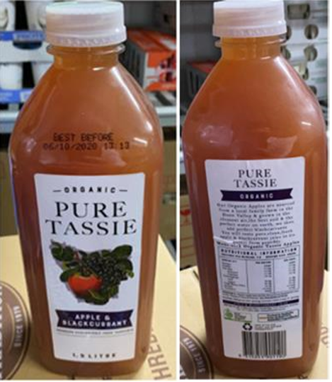 Juicy Isle Pty Ltd recalled Pure Tassie – organic apple and blackcurrant juice 1.5 liter in Australia this week.