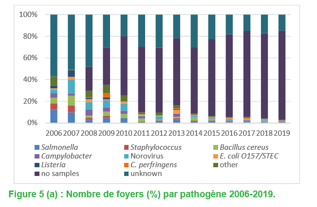One of these incidents led to 203 infections. The outbreak at a Belgian school was likely caused by eggs used to make a tartar sauce. Salmonella Enteritidis 3-12-5-5-1 was detected in human cases and food. Eggs came from a Spanish farm. France also identified 13 cases with isolation dates between May and October 2019.