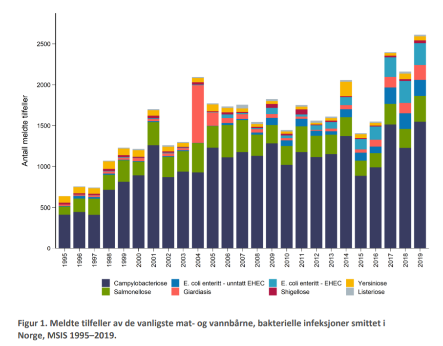 Overall, there were more food and waterborne infections in 2019 compared to 2018, according to the Norwegian Institute of Public Health (Folkehelseinstituttet). For information on outbreaks see our previous article.