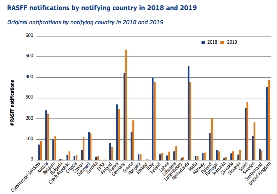 Germany made the most original reports followed by the United Kingdom, Netherlands and Italy in the network’s 40th anniversary year. The U.K. could lose access to RASFF information once it has left the European Union.