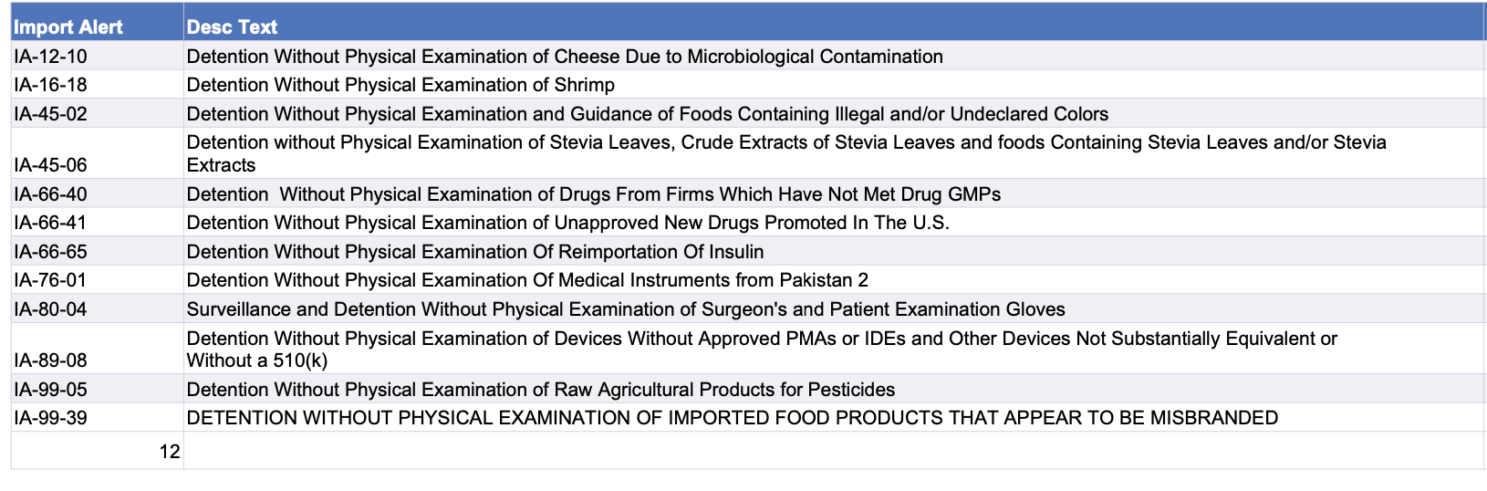 Recent modifications to FDA’s import alerts, as posted by the agency, are listed below. Click on the table to go to the FDA page with links for specific details about various alert modifications.