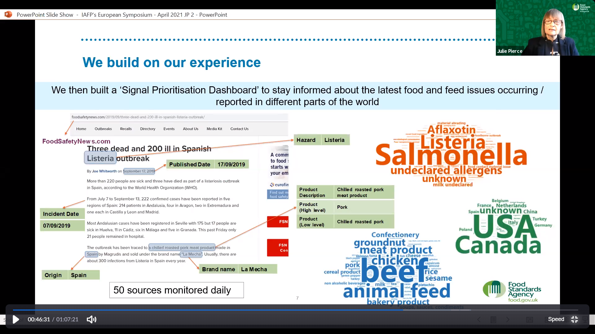 “What we are doing now is trying to see further afield and into the future. From our point of view, having that time to predict and plan for and take action to mitigate any risk is so valuable. We have a system that is collecting data from regulators like ourselves but also other sources like trusted websites, translating it into English and combining it all together into an assessment of the risk we are seeing and presenting that to the user. We update that on a daily basis and speed of response has proven to be really important,” she said.