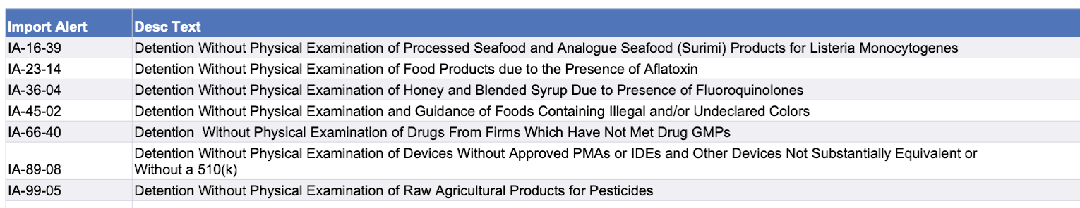 Recent modifications to FDA’s import alerts, as posted by the agency, are listed below. Click here to go to the FDA page with links for specific details about various alert modifications.