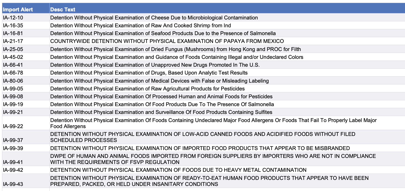 Recent modifications to FDA’s import alerts, as posted by the agency, are listed below. Click here to go to the FDA page with links for specific details about various alert modifications.