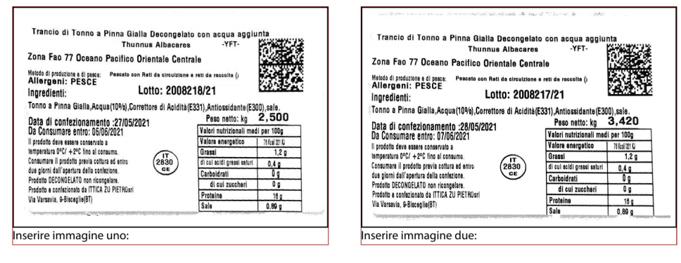 The Italian Ministry of Health (Ministro della Salute) has published a recall of six lots of thawed yellowfin tuna steaks with added water that were packed by Ittica Zu Pietro SRL.