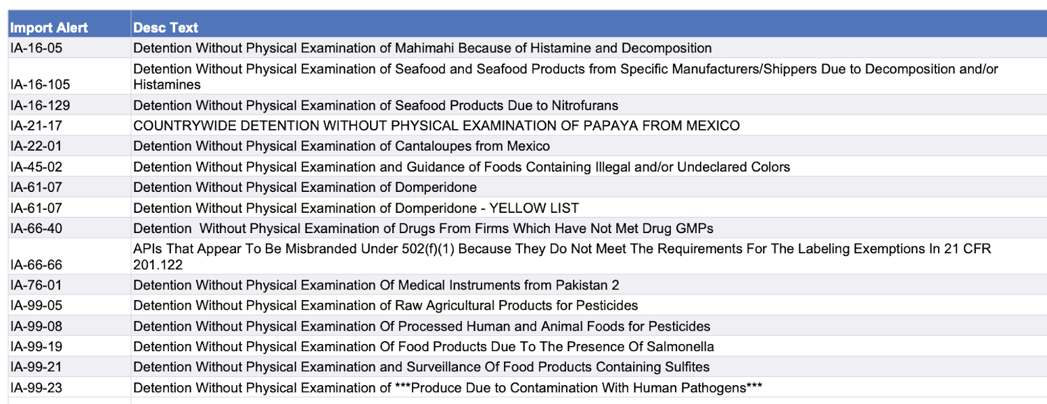 Recent modifications to FDA’s import alerts, as posted by the agency, are listed below. Click here to go to the FDA page with links for specific details about various alert modifications.