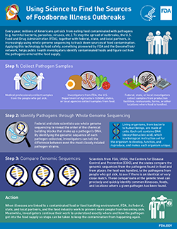Whole genome sequencing (WGS) is a cutting-edge technology that FDA has put to a novel and health-promoting use. WGS reveals the complete DNA makeup of an organism, enabling the FDA to better understand variations both within and between species. This allows the FDA to differentiate between organisms with a precision that other technologies do not allow.