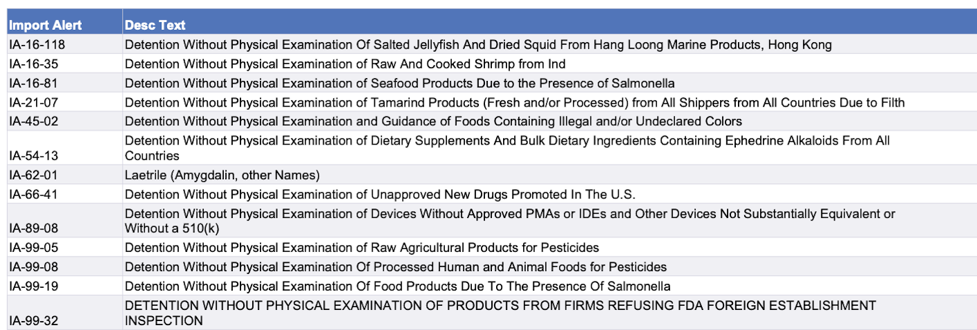 Recent modifications to FDA’s import alerts, as posted by the agency, are listed below. Click here to go to the FDA page with links for specific details about various alert modifications.