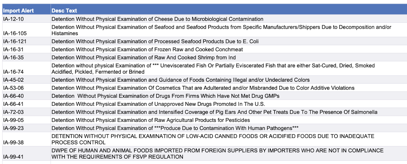 The Food and Drug Administration uses import alerts to enforce U.S. food safety regulations for food from foreign countries. The agency updates and modifies the alerts as needed.