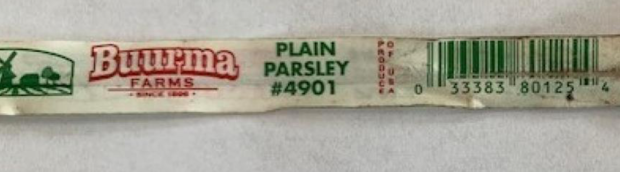 The PLU and UPC numbers are not unique to Buurma Farms and would be on all flat/plain parsley regardless of where it is from. So, consumers should be sure to look for the Buurma Farms logo.