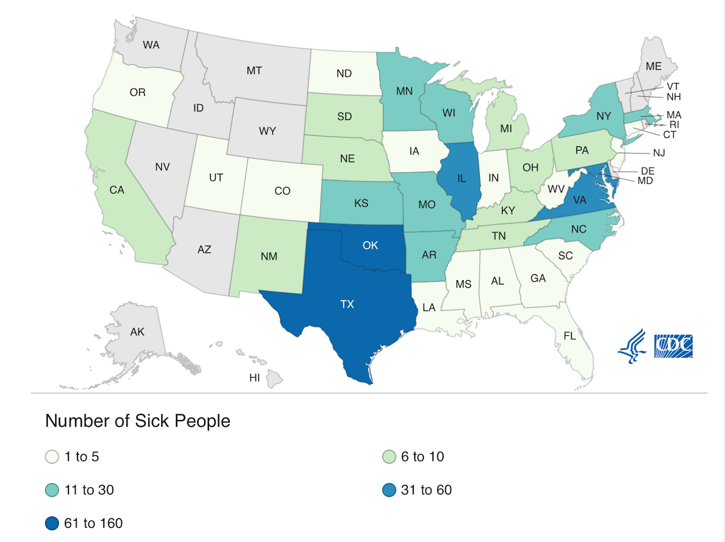 Officials from the CDC and the Food and Drug Association have been investigating the outbreak for weeks. The confirmed sick people live in 37 states.