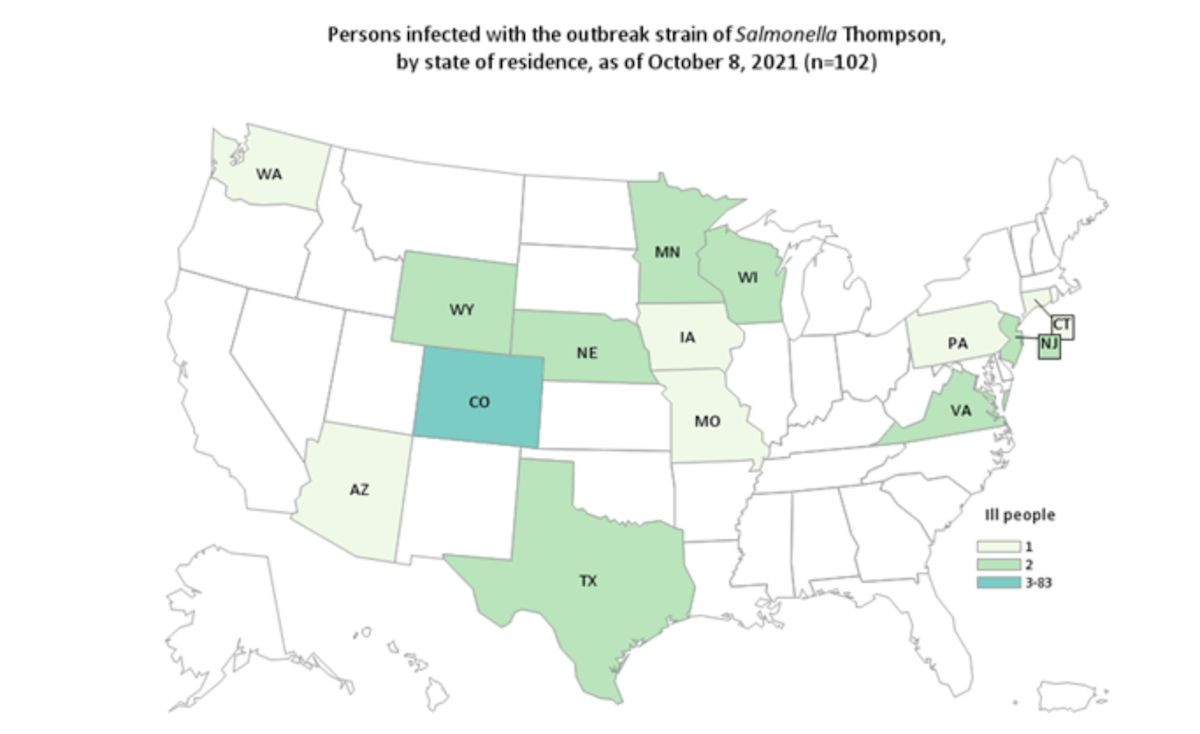 The true number of sick people in an outbreak is likely much higher than the number reported, and the outbreak may not be limited to the states with known illnesses, according to the CDC. This is because many people recover without medical care and are not tested for Salmonella. In addition, recent illnesses may not yet be reported as it usually takes 3 to 4 weeks to determine if a sick person is part of an outbreak.