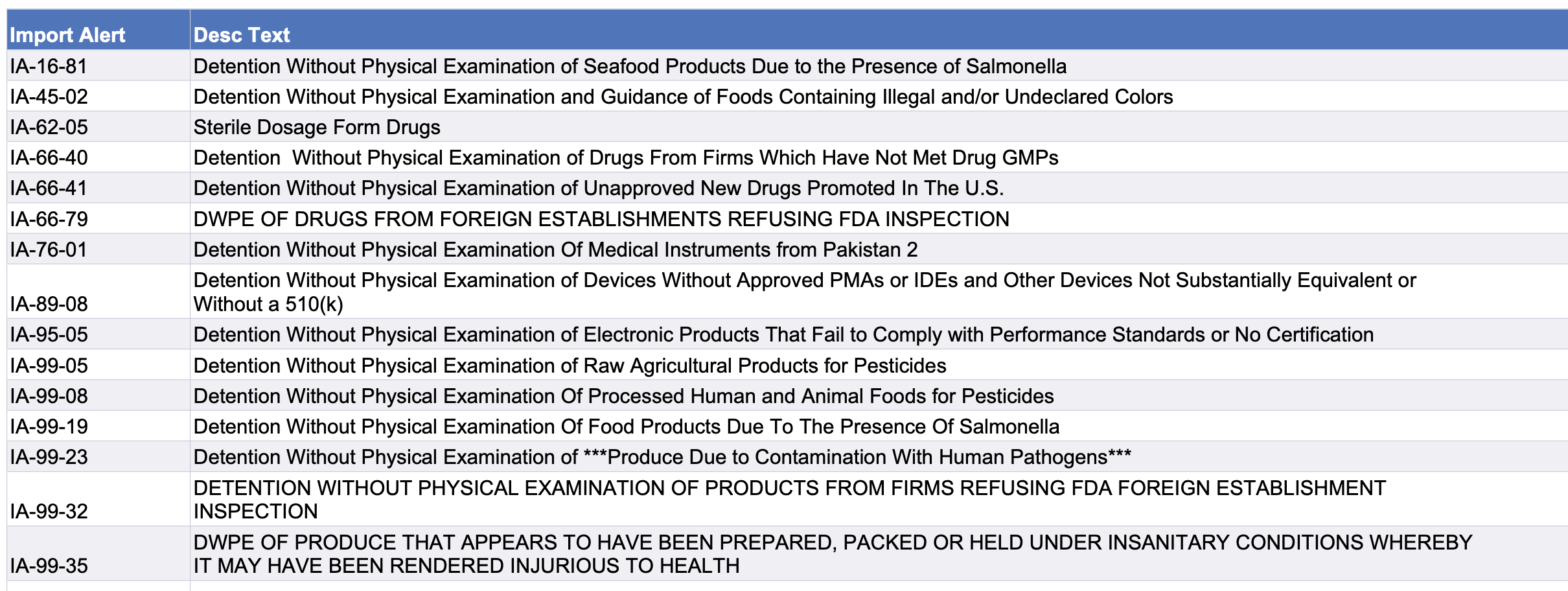 Recent modifications to FDA’s import alerts, as posted by the agency, are listed below. Click here to go to the FDA page with links for specific details about this week’s various alert modifications.