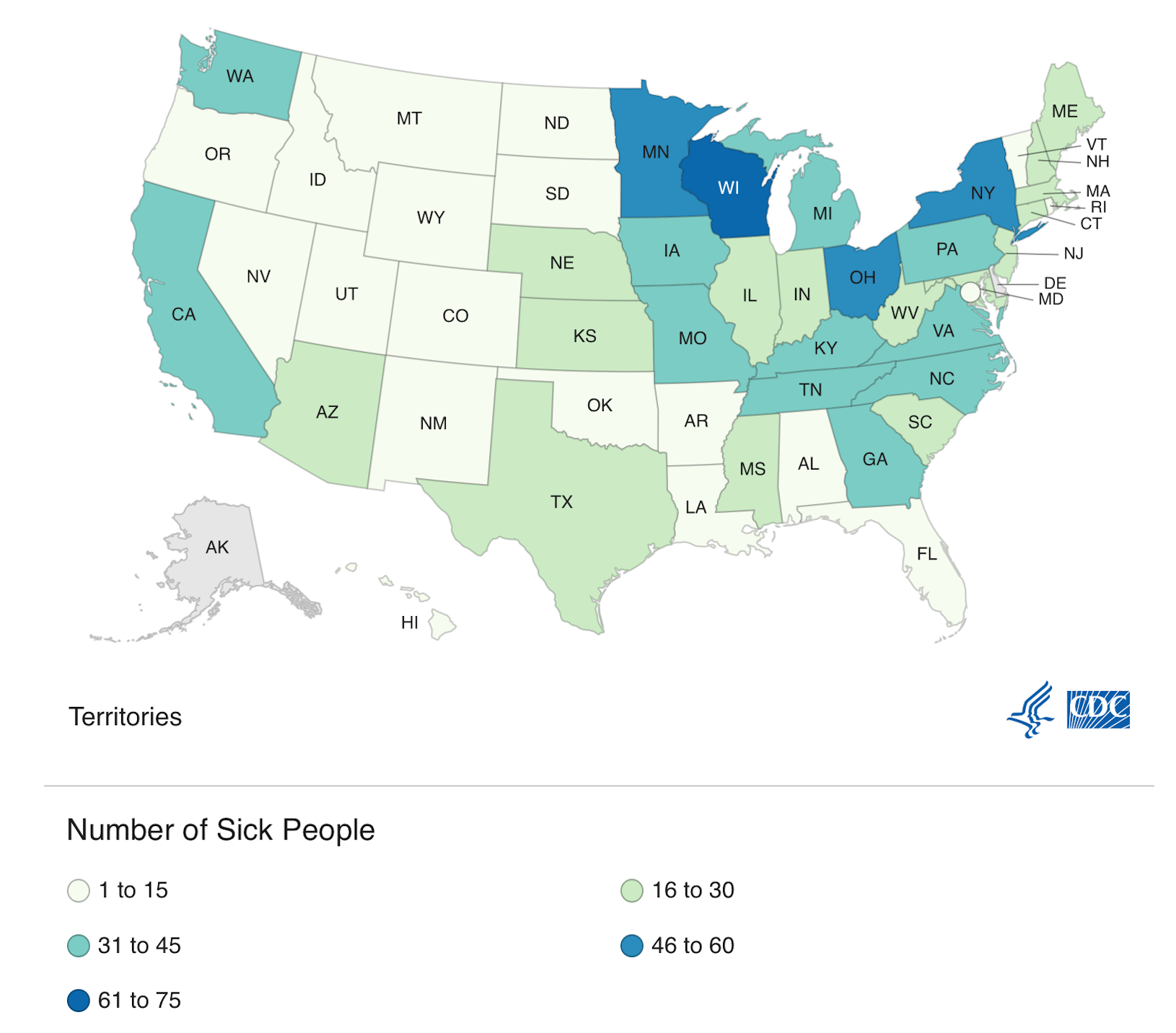 “The true number of sick people in these outbreaks is likely much higher than the number reported, and these outbreaks may not have been limited to the states with known illnesses,” according to the CDC.