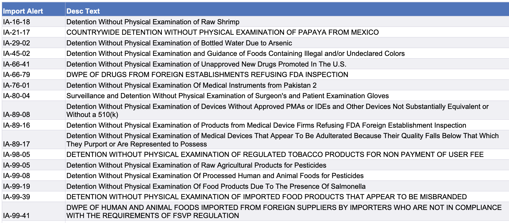 Recent modifications to FDA’s import alerts, as posted by the agency, are listed below. Click here to go to the FDA page with links for specific details about this week’s various alert modifications.