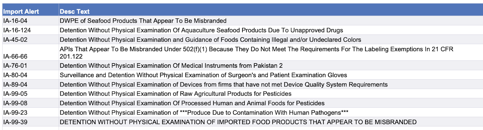Recent modifications to FDA’s import alerts, as posted by the agency, are listed below. Click here to go to the FDA page with links for specific details about this week’s various alert modifications.