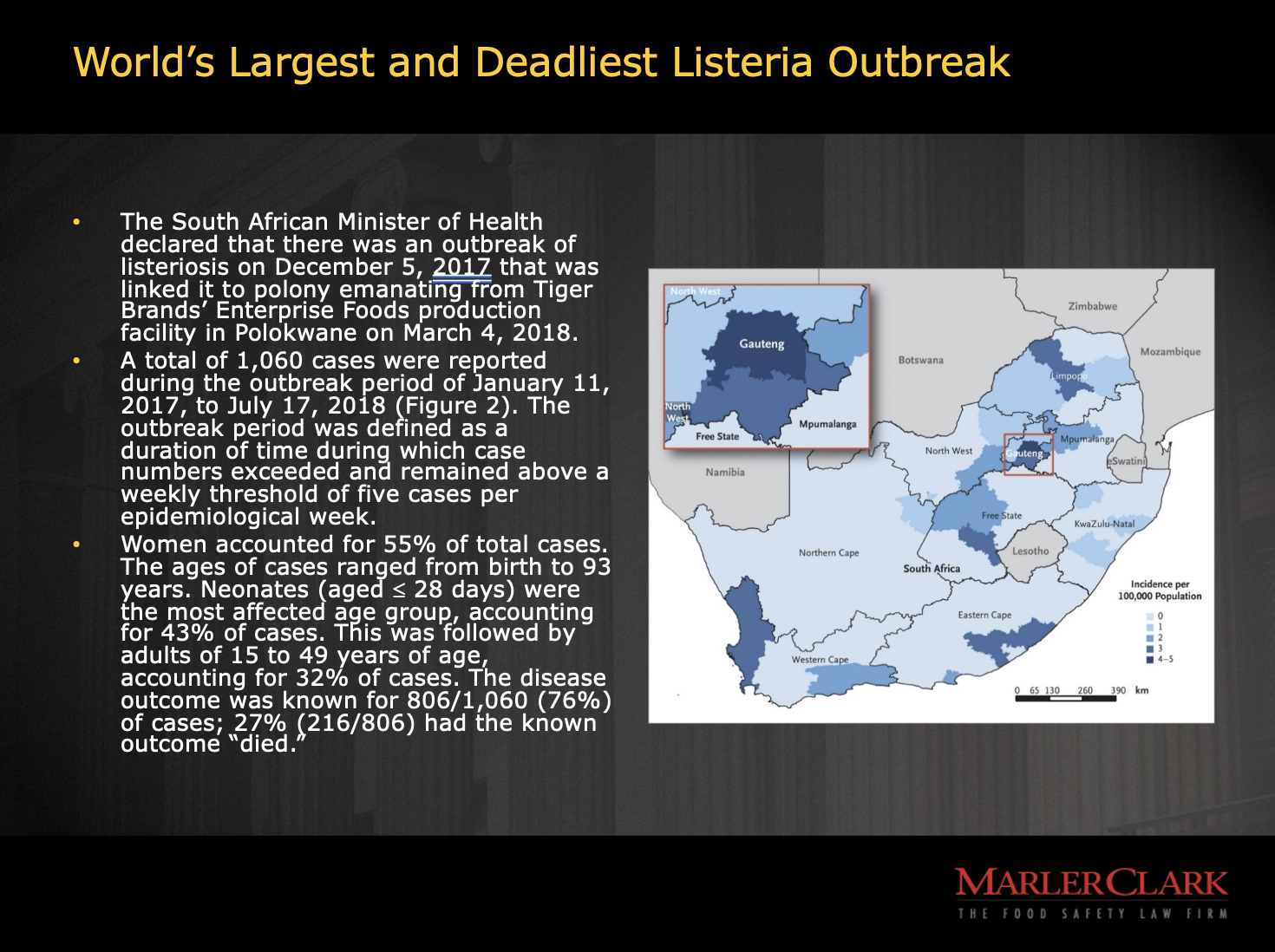 In March of this year it will be 4 years since I boarded a flight from Seattle to Johannesburg (20 plus hour flight) to speak at a food safety conference just days after the South African health authorities announced that a Listeria outbreak had been linked to a product named polony manufactured by the largest food manufacturer in Africa.