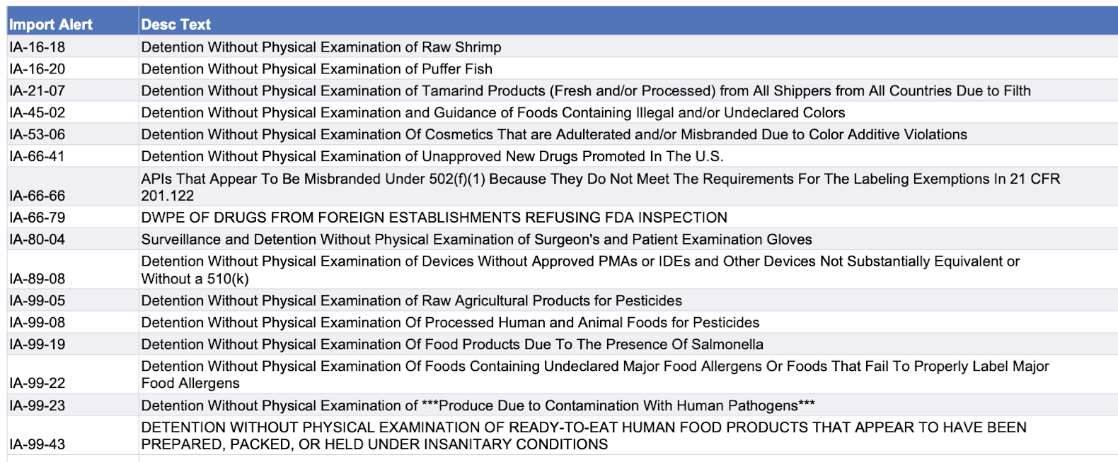 The Food and Drug Administration uses import alerts to enforce U.S. food safety regulations for food from foreign countries. The agency updates and modifies the alerts as needed.