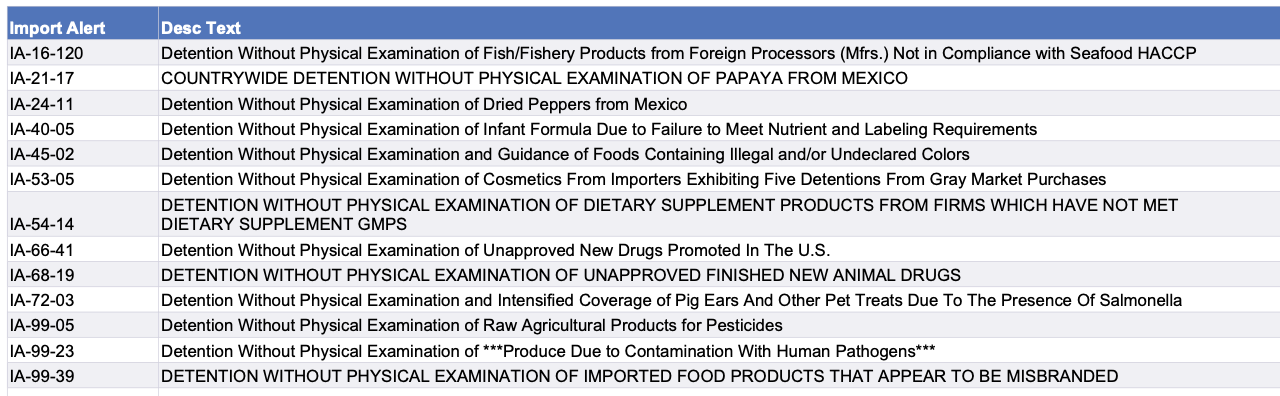 Recent modifications to FDA’s import alerts, as posted by the agency, are listed below. Click here to go to the FDA page with links for specific details about this week’s various alert modifications.
