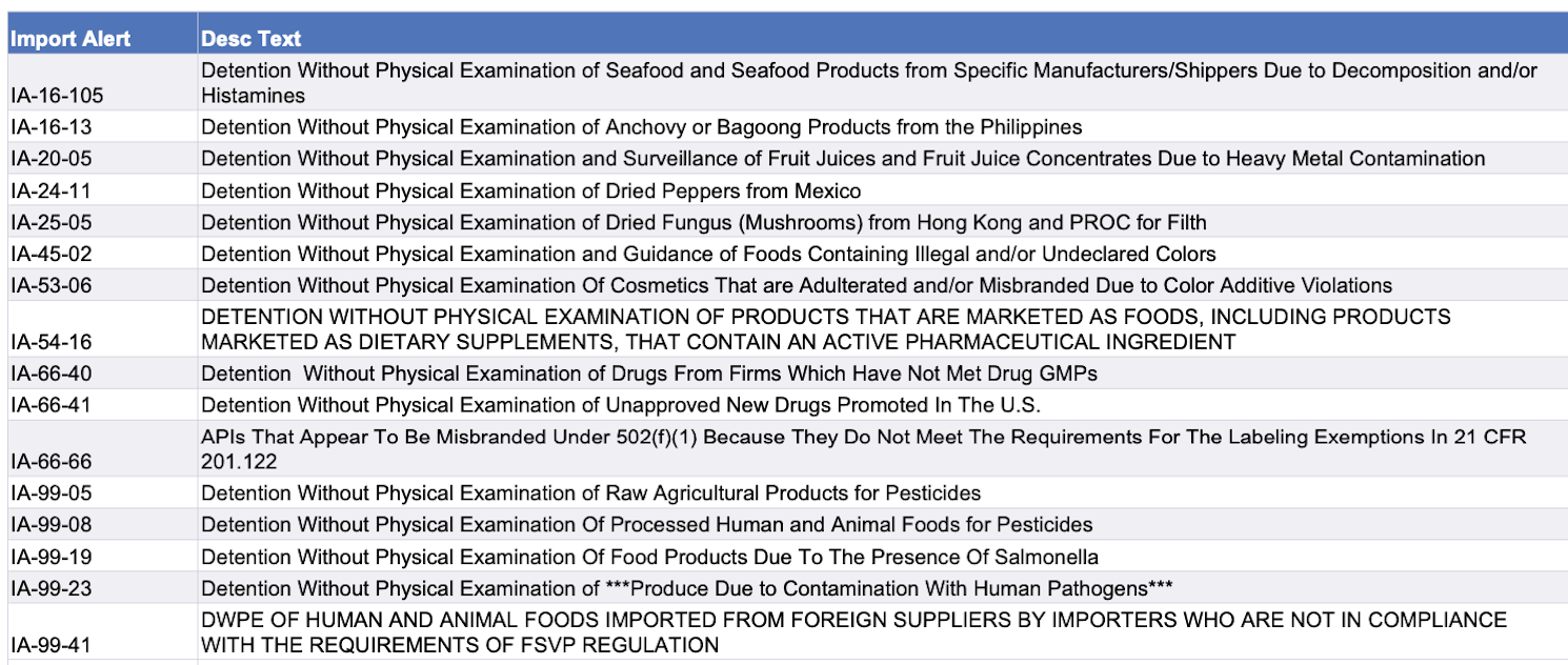 The Food and Drug Administration uses import alerts to enforce U.S. food safety regulations for food from foreign countries. The agency updates and modifies the alerts as needed.