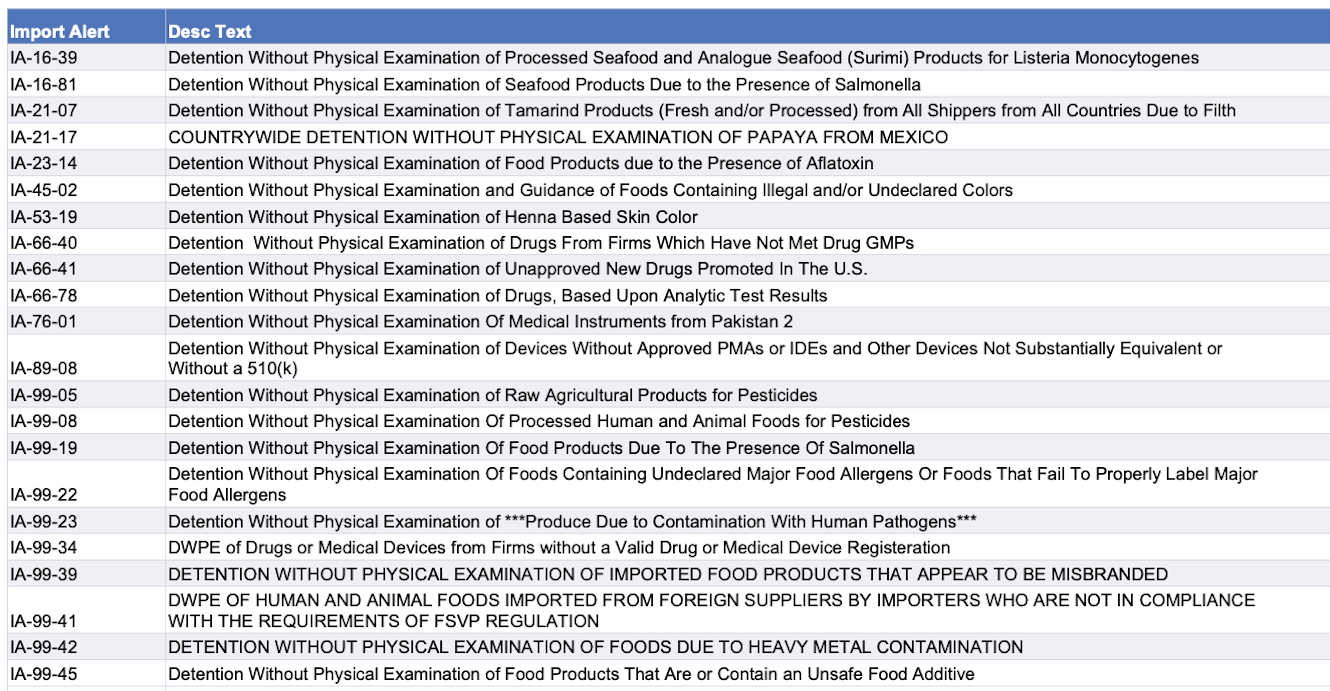 The Food and Drug Administration is continuing its use of import alerts to enforce U.S. food safety regulations for food from foreign countries. The agency updates and modifies the alerts as needed.
