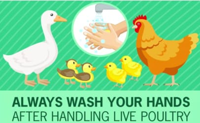The Centers for Disease Control and Prevention says that children younger than five years of age shouldn’t handle or touch chicks, ducklings or other poultry, because young children are even more likely to get sick from germs like Salmonella.
